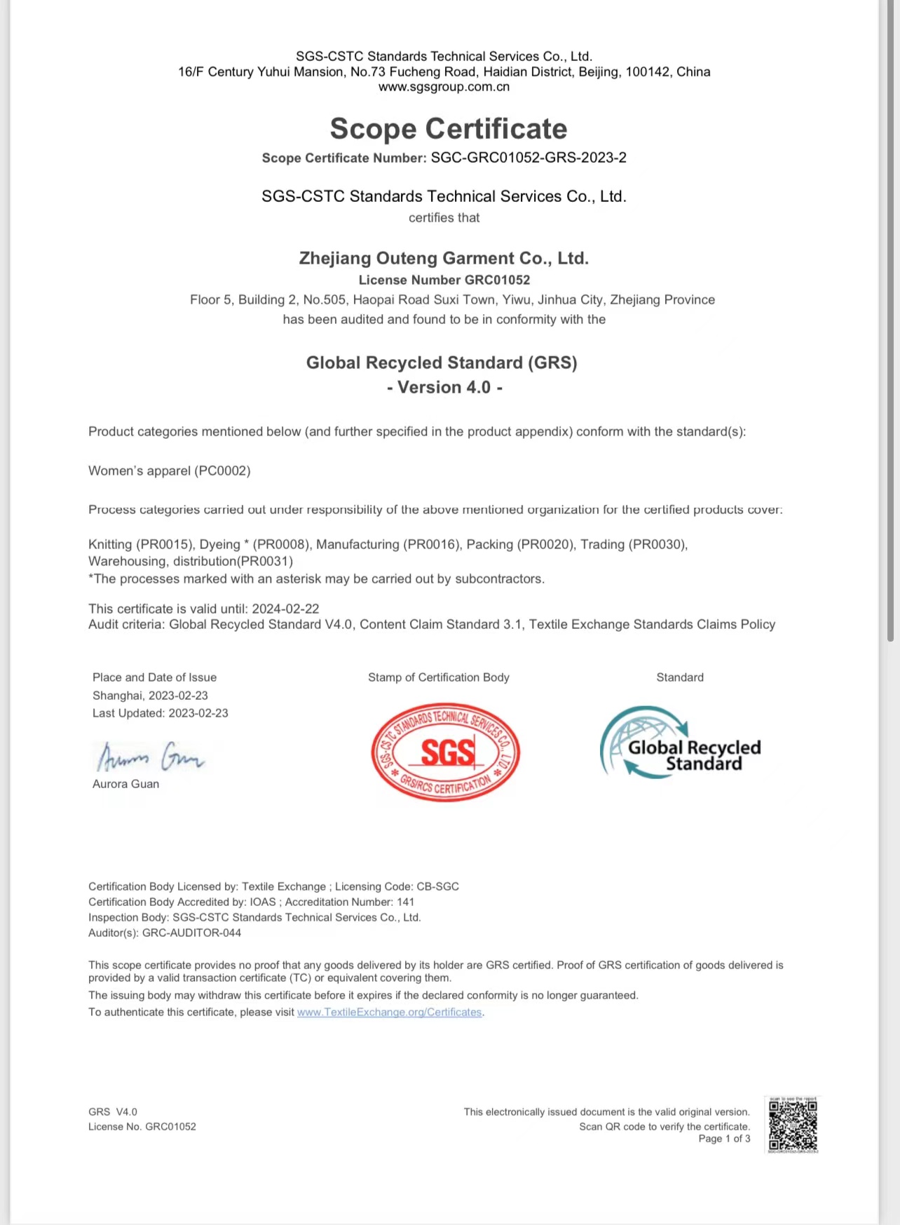 浙江歐騰服飾有限公司位于世界小商品之都-義烏。創立于2015年,是一家專業生產無縫針織運動服飾和內衣的工貿一體企業,擁有自主出口權。 工廠的占地面積約16000平方米 ,引進了大型圣東尼、高騰等多種先進的制衣設備300余臺。月產能可達90萬件。 歐騰服飾每年投入近百萬資金打樣開發新產品,有著一支高素質設計、技術員工隊伍。工廠先后通過了ISO 9001質量管理體系認證、BSCI認證、GRS認證、OEKO-TEX國際生態紡織品認證等多項專利檢測報告。可提供OEM&ODM服務。歐騰服飾以一套完整、科學的質量管理體系,生產的服裝從原材料紗線到成衣,質量完全能夠滿足國內、國際質量要求。獲得了客戶一致好評。工廠先后獲得省科技型企業、國家高新企業、義烏市誠信講信用單位、規上企業、信用AAA級等榮譽。